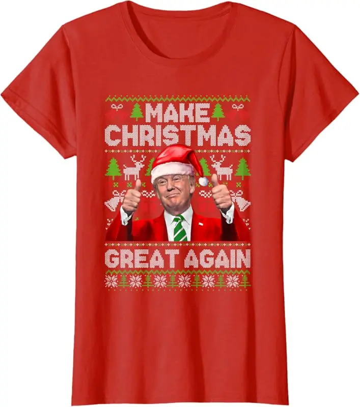 Make Christmas Great Again Funny Trump Xmas Snow Pajama Ugly T-Shirt